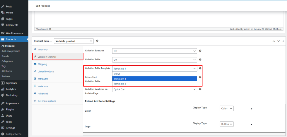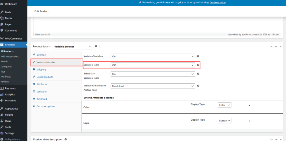 Step 2: Disable the Variation Table for a Specific Product (Optional)