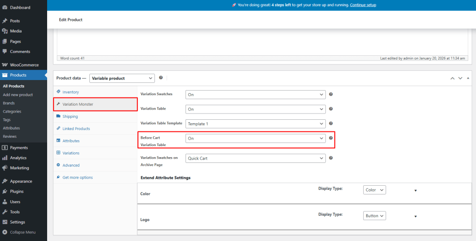 - Open the Variation Monster tab under Product Data