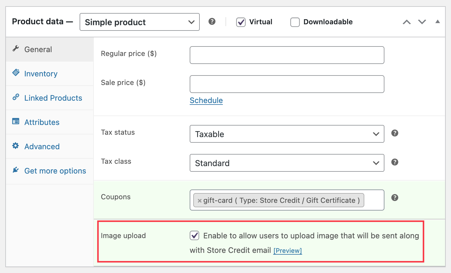 3. In the Product data section, scroll down to find the Image upload option.Smart-Coupons-Image-Upload