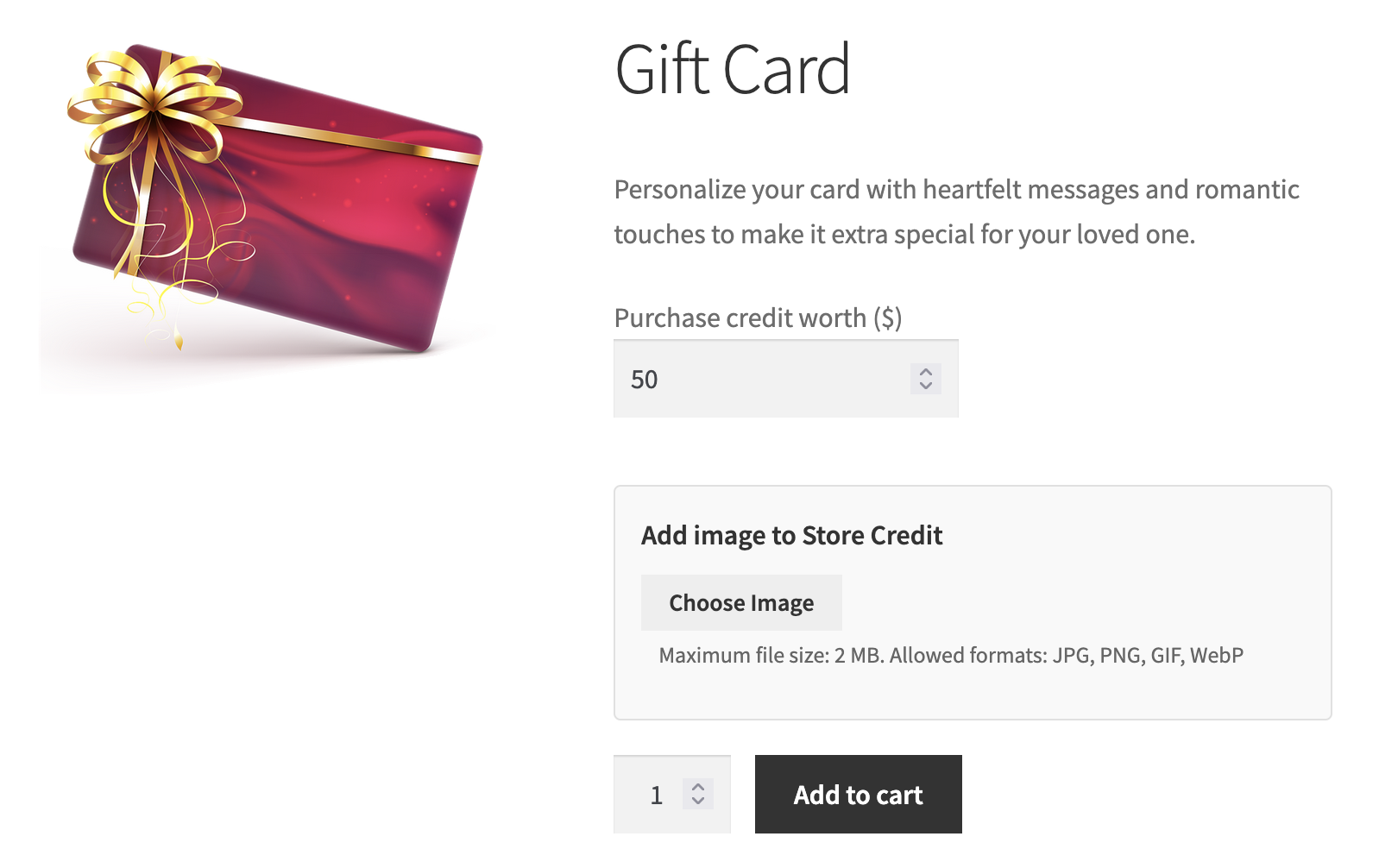 With this feature enabled, customers can personalize their gift card purchases with images, creating a more meaningful gift experience.