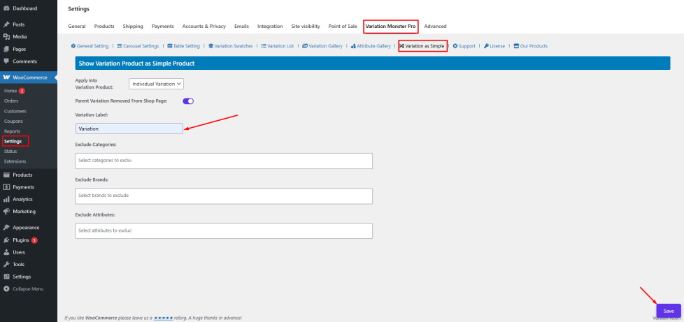 ↑ Back to top- Enable the option Parent Variation Removed From Shop Page