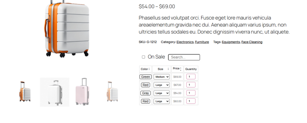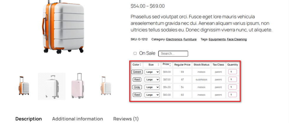 Now, visit a variable product page, and you will see a beautifully integrated table that perfectly matches your store’s visual style.