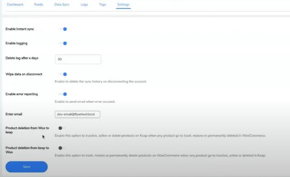 5. Enable Error Reporting: Enabling this feature in the Settings tab will let the admins receive emails for any errors while adding a new product for syncing.