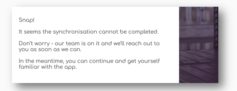 It can happen the installation and set up cannot be completed. This can happen for example when product data is corrupted, or when the sync is interrupted.