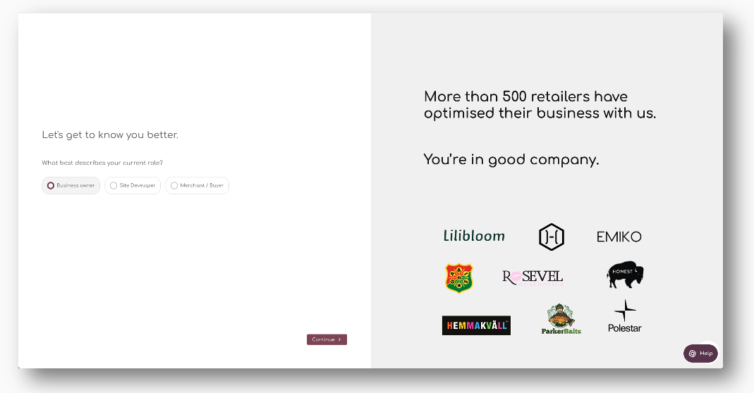 ↑ Back to topAfter confirming your email address, a start up wizard opens to set up your store. Shelf Planner is a plug and play solution and we promise there will never be any coding required.