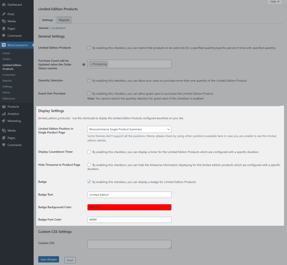 ↑ Back to topIn this section, you can configure general settings to enable functionality of Limited Edition Products for WooCommerce.