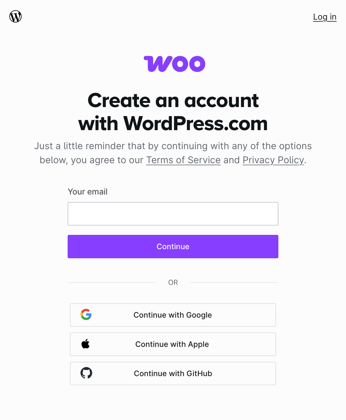↑ Back to topIf you have an existing WordPress.com account that you would like to use, you can log in to WooCommerce.com using that account’s details.