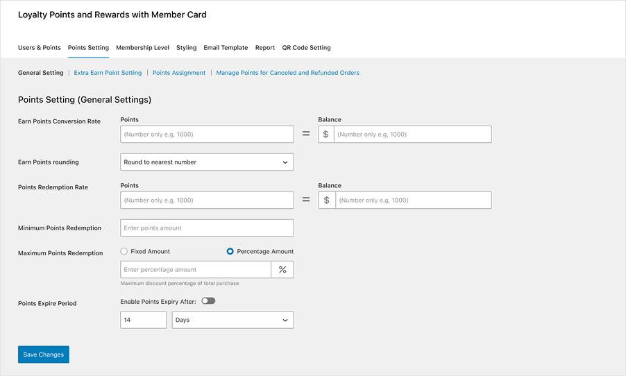 - Go to: Loyalty Points and Rewards with Member Card Admin Dashboard > Points Settings