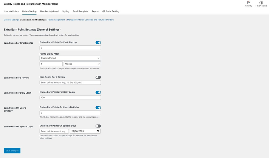 Extra Earn Point Settings