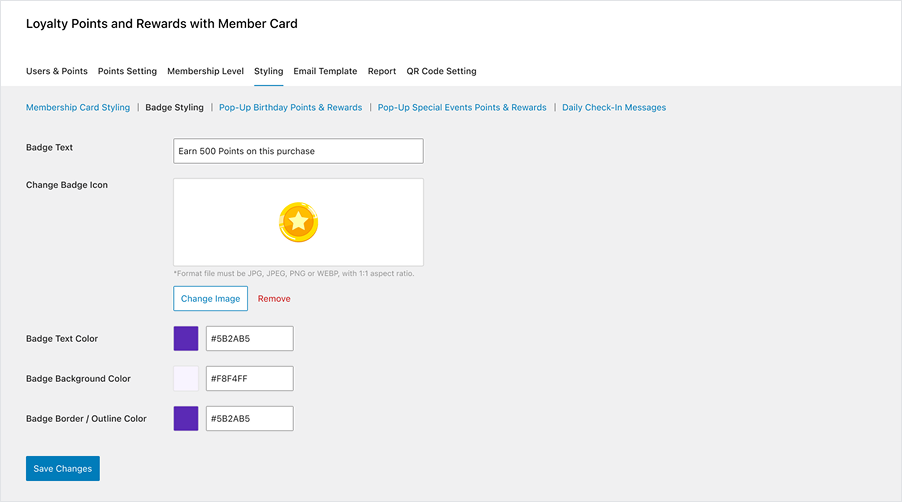 - Goto: Loyalty Points and Rewards with Member Card Admin Dashboard > Styling > Points & Reward Badge Styling