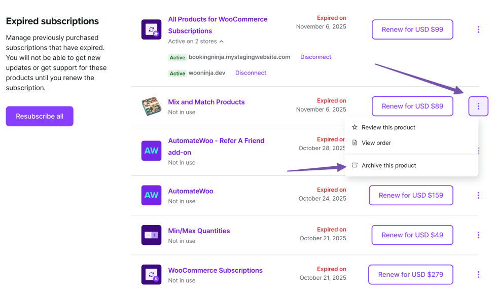 Archiving expired WooCommerce.com subscriptions