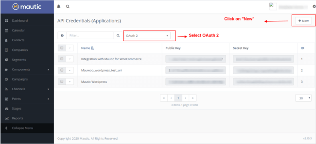 To generate your set of Mautic API keys, navigate to Mautic Settings.