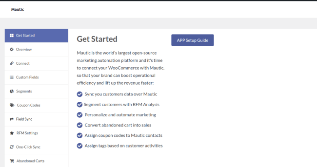 ↑ Back to topMautic Integration for WooCommerce syncs your WooCommerce customers’ data on Mautic. So that you can segment your WooCommerce customers, set automated & targeting campaigns, and recover your abandoned carts easily. Businesses can get more leads, sales, and conversions by using WooCommerce Mautic Integration.