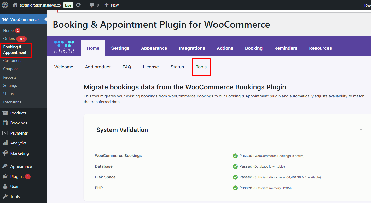 Go to WooCommerce → Booking & Appointment Plugin → Home→ Tools