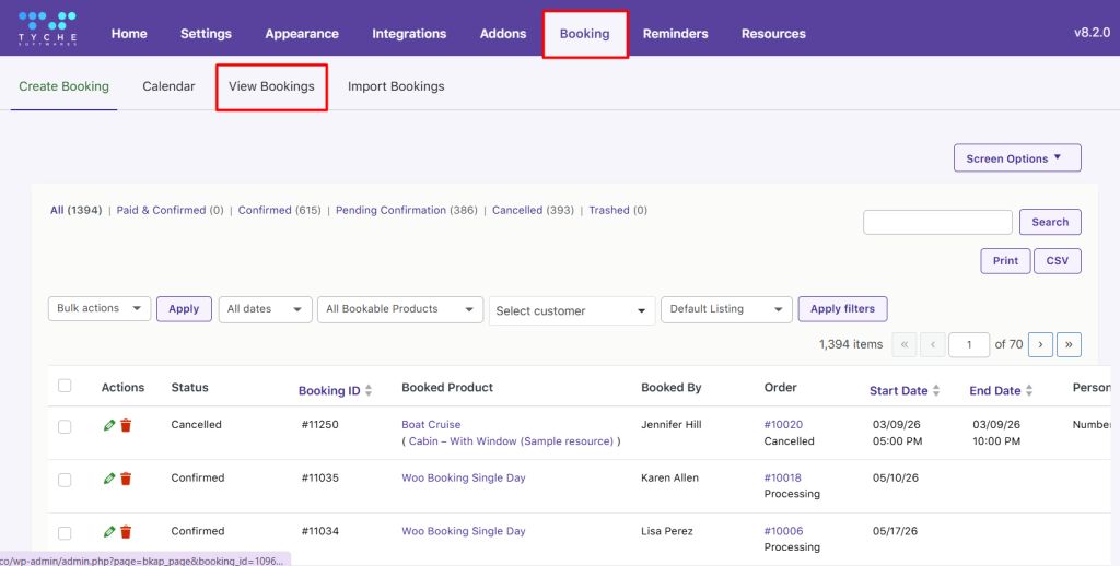 From the View Bookings page, you can see complete details of the migrated booking, including customer, dates, status, and pricing.