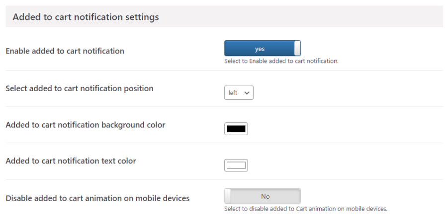 - Add to Cart Notification Background Color: Set the background color for the add to cart notification.