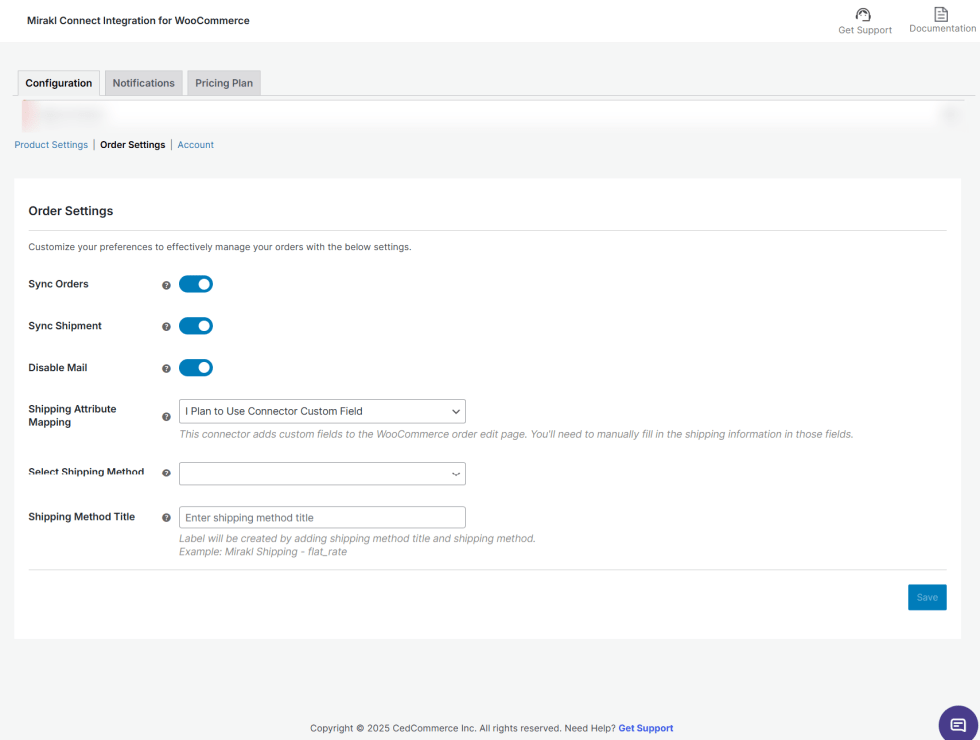 - Sync Shipment – By enabling this option, the shipments from the WooCommerce store will be automatically synchronized to Mirakl Connect.