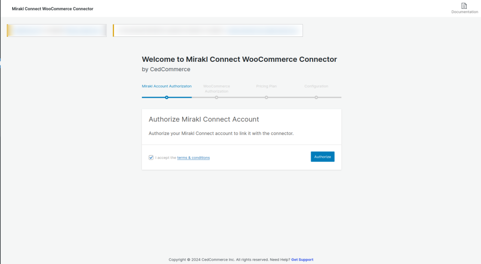 ↑ Back to topOnce the plugin is installed on your WooCommerce store successfully, navigate to the CedCommerce menu and then click on the Mirakl submenu. Authorize your WooCommerce account by simply clicking on the ‘Authorize’ button and the WooCommerce store gets connected effortlessly.