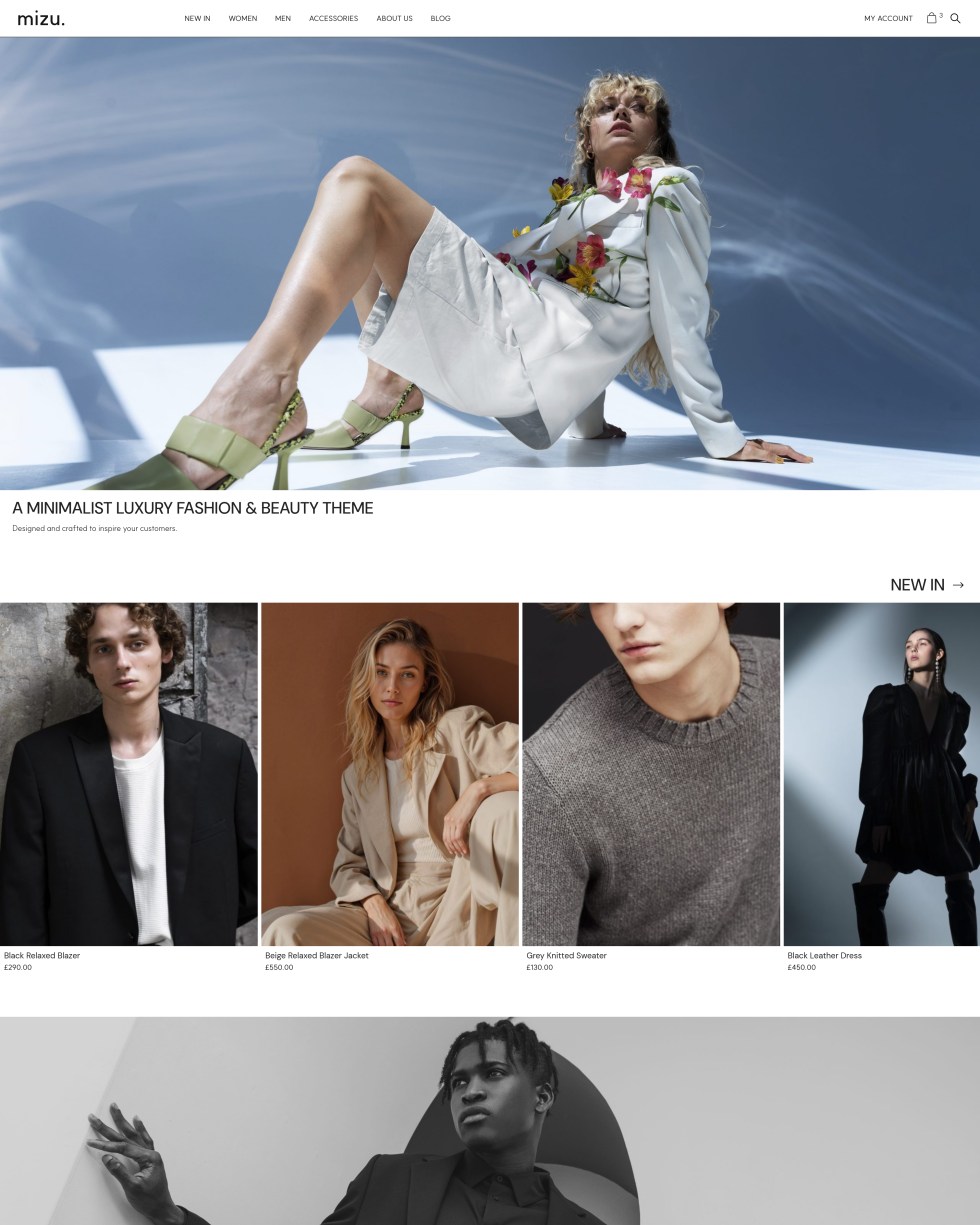 Mizu Theme for Luxury Fashion is a minimal, multi-purpose, intuitive and easy-to-