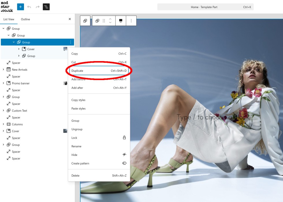 Blogtemplate part and click on it.