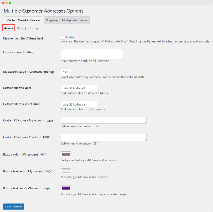 - Custom CSS rules- My Account Page – Add custom styling to addresses section in my account page (Keep empty to use default styling)