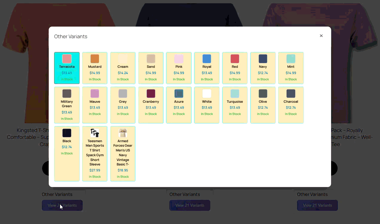 Custom Product Variants allows your WooCommerce store to group individual products and display them as variations in multiple preferred layouts.