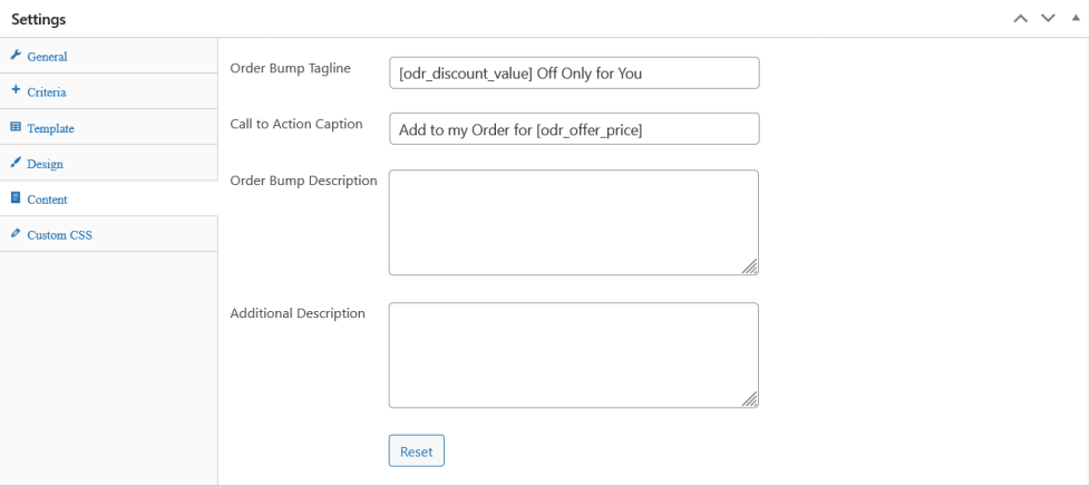 Order Bump – Rule Configuration – Content