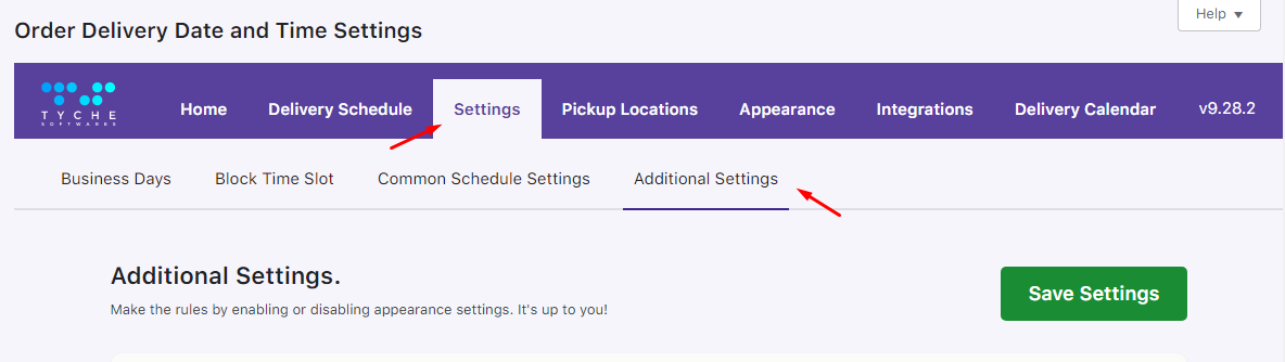First, we need to enable settings in the plugin, so go to Order Delivery Date -> Settings -> Additional Settings page: