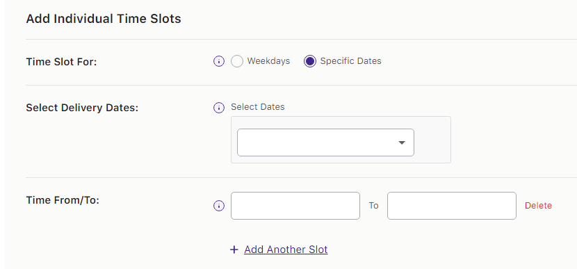 You can block or hide time slots for delivery for particular dates or weekdays. That means that the time slots will not be available for the users in the Time slot drop down on the checkout page.