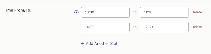↑ Back to topYou can block or hide time slots for a particular date or for a particular weekday. If you want to hide time slots temporarily for a date then you need to select the Dates option of “Block Time Slot for” setting.