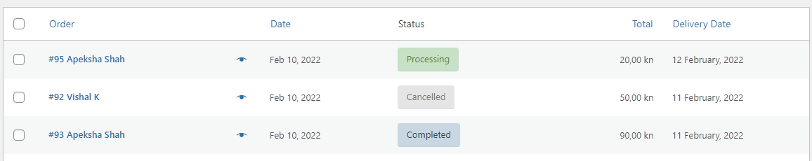 Here when you enable it, the Delivery Date column will be added on the WooCommerce -> Orders page as shown below: