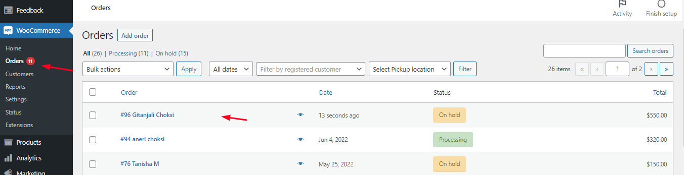 2. Filter Orders