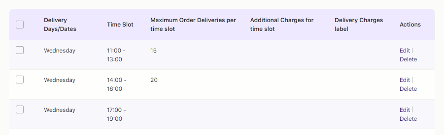 For instance, an online supermarket has set three time slots for each of their deliveries that take place on Wednesdays. For this, they’ve created a Custom Delivery Schedule.