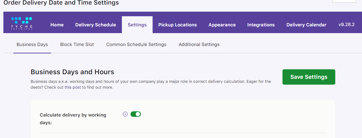 ↑ Back to topGo to Order Delivery Date > Settings > General Settings > Business Days settings. Your Business days settings page will look like this: