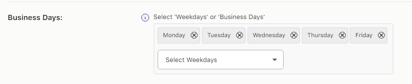 Please note that your store’s Business Days are different from Delivery Weekdays. Business days refer to those days when your store is open or those days specifically when you will be able to provide your products to your 3rd party delivery & shipping provider. Delivery Weekdays, on the other hand, are those days when your delivery & shipping provider will be able to deliver your products to your customers.