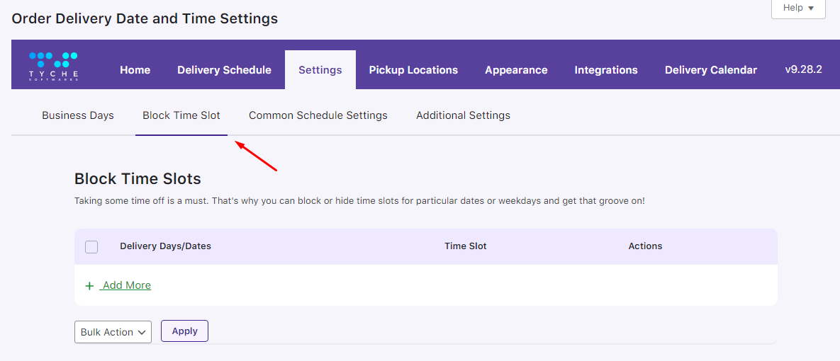 To block a time slot, go to Order Delivery Time – Settings – Block Time Slot.