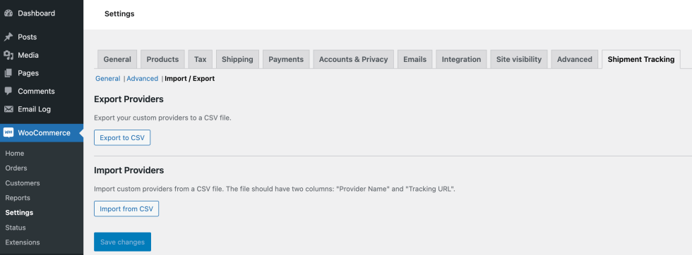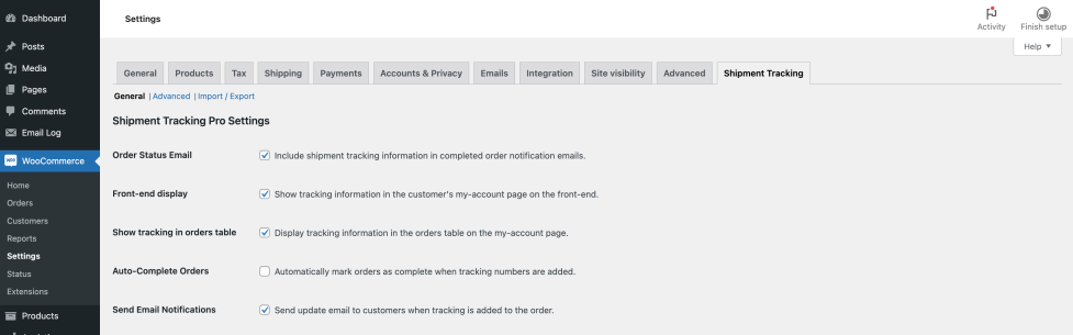 - Go to WooCommerce > Settings > Shipment Tracking to configure the plugin according to your preferences.