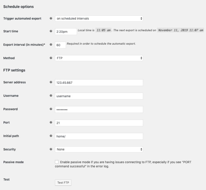 ↑ Back to topThis plugin relies on WP-Cron (the established way of performing recurring tasks within WordPress) to schedule automated export jobs. Unfortunately, the WP-Cron system is not always perfectly accurate – it requires constant traffic to your site to trigger events at the right times, which can be difficult for sites with less traffic.