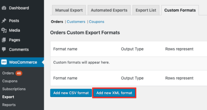 - Your previous exports, custom formats, and automated export (if applicable) will be migrated from the XML Export plugin to this plugin