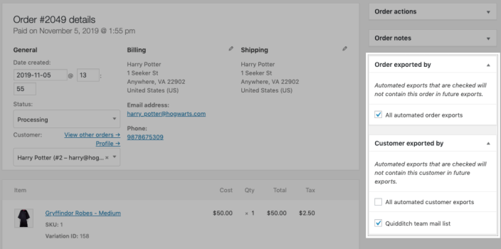 - Orders placed / customers created before activating this plugin will not be automatically exported. They can, however, be marked as exported if you’d like.