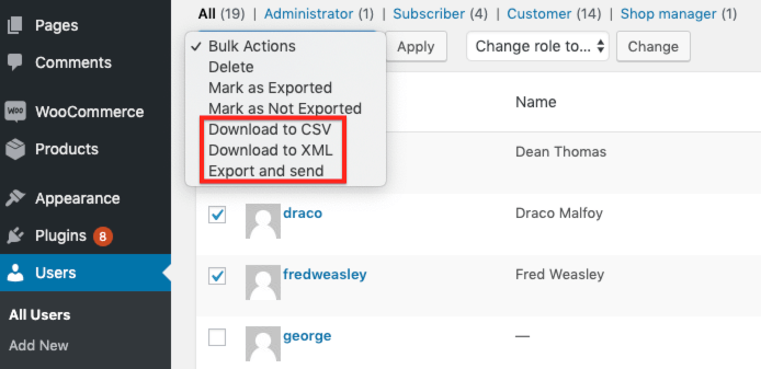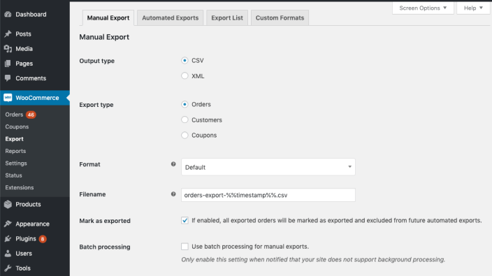 ↑ Back to topThe WooCommerce Customer / Order / Coupon Export extension lets you export your site’s customers, orders, or coupons to a CSV or XML file. Here are a few of the features offered by this plugin to make it easier to manage your site’s data: