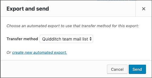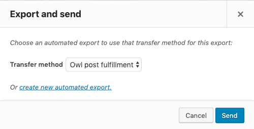 - If you chose Export and Send, you’ll be prompted to select one of your automated order exports so the same transfer method can be used to send this export. Only automated customer exports with FTP, HTTP POST, or email transfer methods can be selected for this type of export.