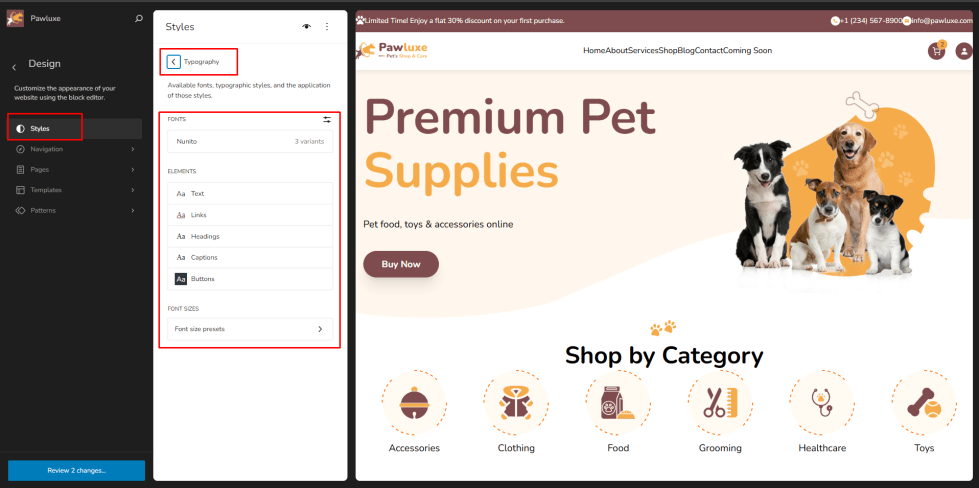 Built around this philosophy, Pawluxe focuses solely on styling WordPress and WooCommerce blocks without modifying your website’s underlying functionality.