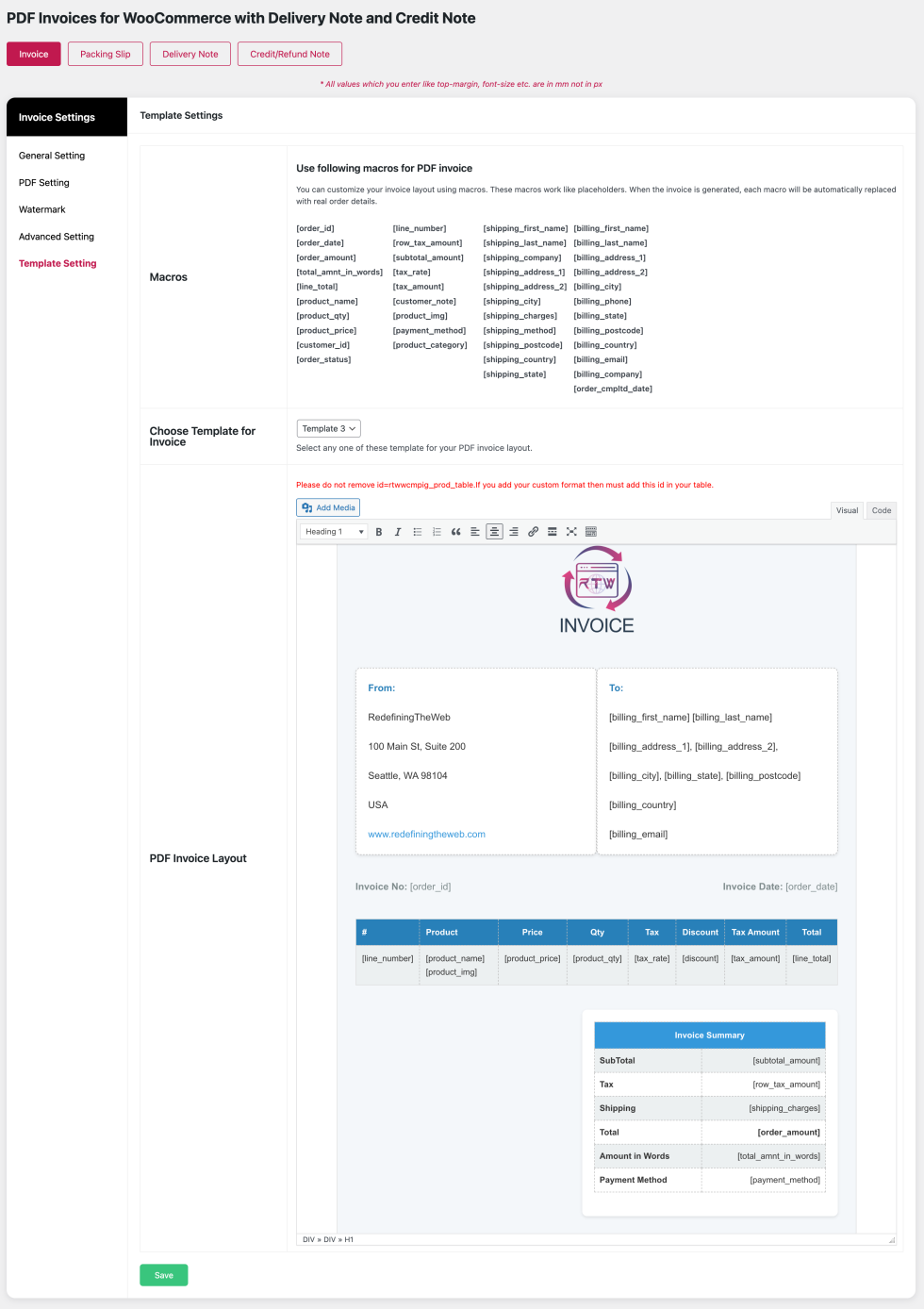 โ Back to topWooCommerce โ PDF Suite โ Template Setting