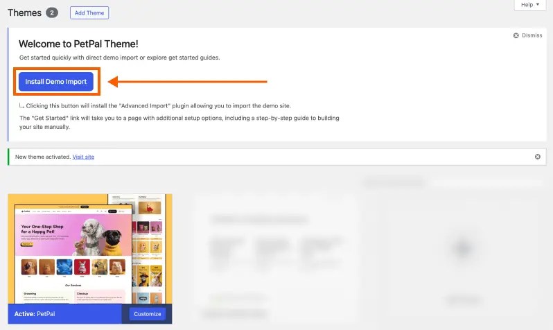 PetPal theme comes with a pre-built demo which you can import into your website.