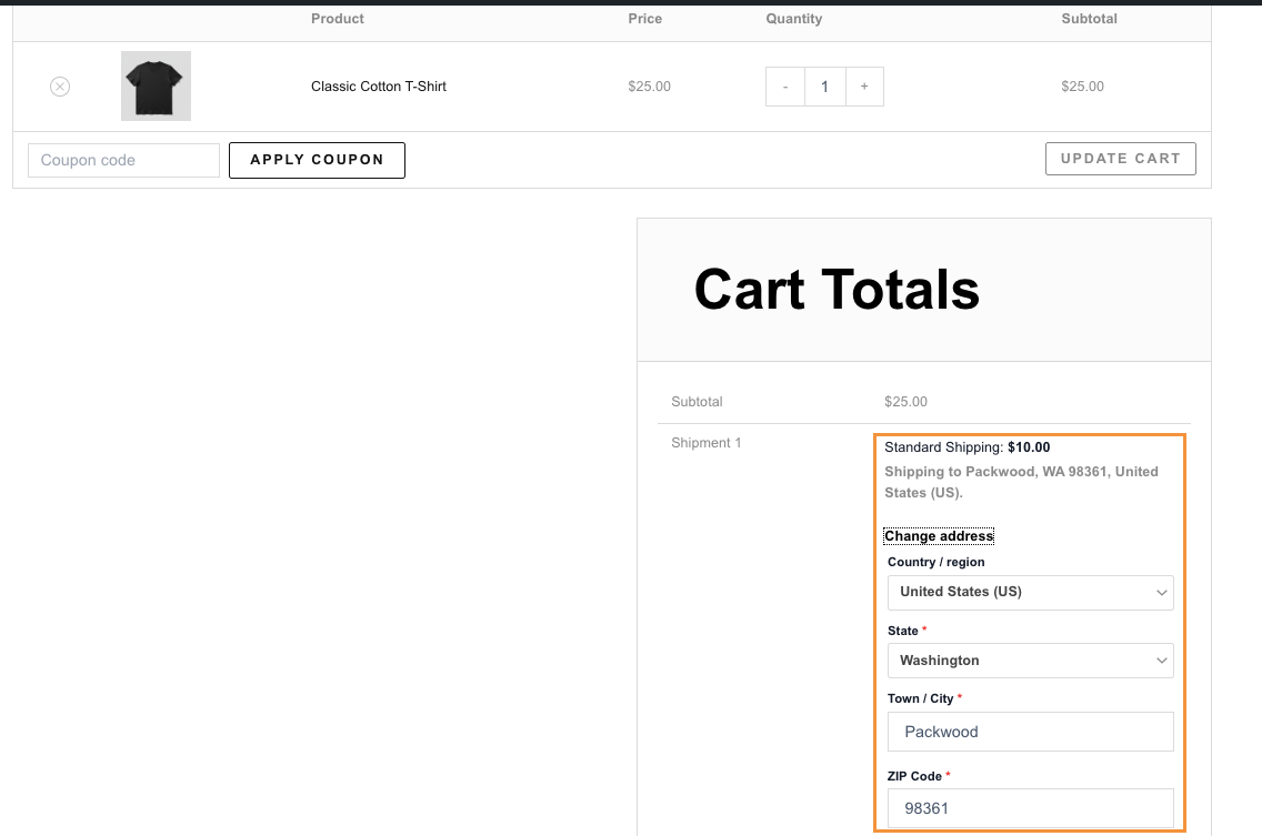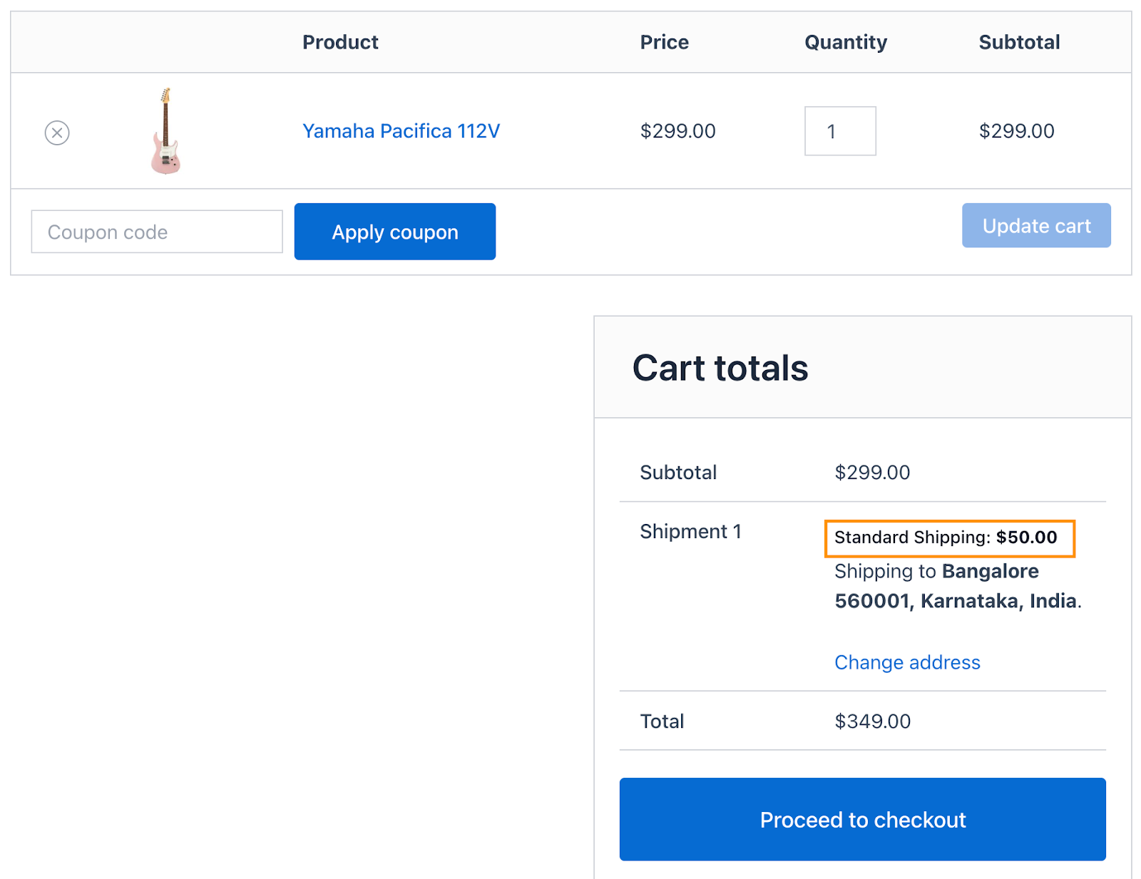 Then, accordingly, shipping rates will be displayed on the cart/checkout page as shown in the image.