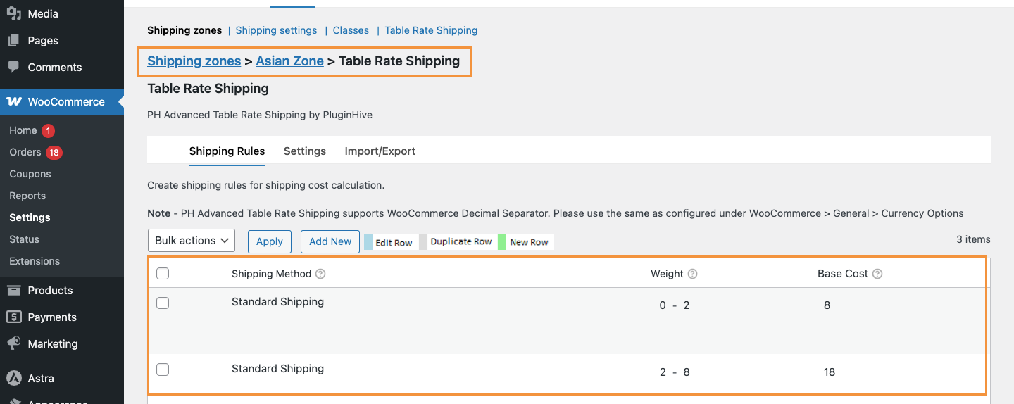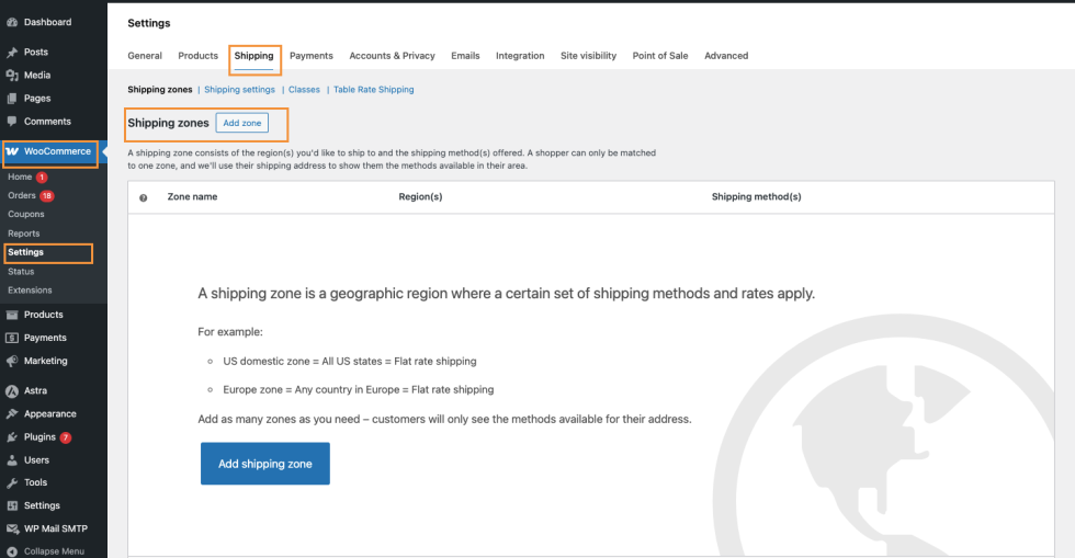 You can also configure Table Rate Shipping methods under WooCommerce Shipping Zones. This allows you to create shipping zones based on your requirements and add rules to each zone.