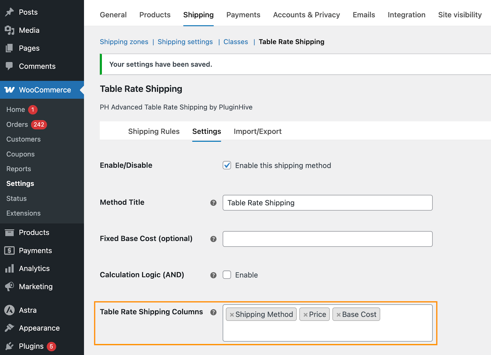 After installing and activating PH Advanced Table Rate Shipping, the next step is to access the plugin settings and configure the plugin further as per your business requirements.
