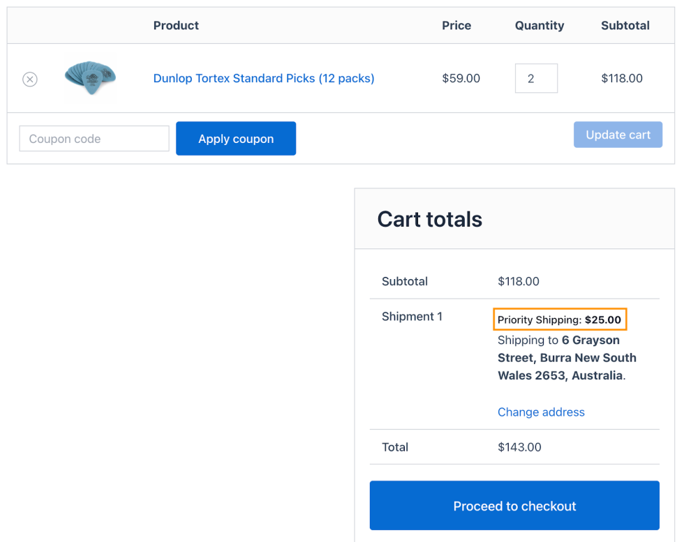 ↑ Back to topShipping costs can vary depending on where your customers are located. By setting zone-based shipping rules, you can charge accurate rates for each region and display the correct shipping cost at checkout. For example: