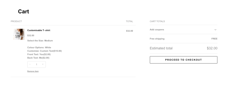 Once a customer selects the required product add-ons on the product page and adds the product to the cart, the selected options follow the product through the entire order flow.